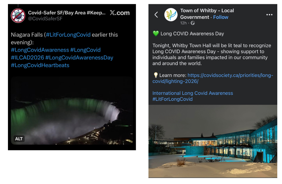 We’ll leave you with images from #LitForLongCovid, with images spreading across social media on Sunday of landmarks from around the world lit up in teal for Long Covid awareness. From Cardiff Castle to Whitby Town Hall, via Niagara Falls, the photos were a poignant reminder of the global long-term impact of the pandemic six years on, too often hidden from sight.